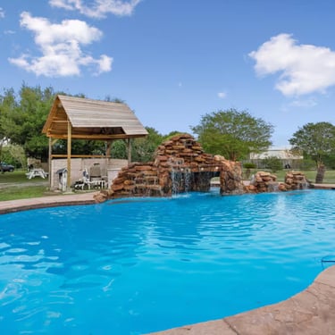 Experience 3 cabins, an Event Space, and a waterfall pool for your upcoming event in Kyle, Texas, all offered at an excellent price.
